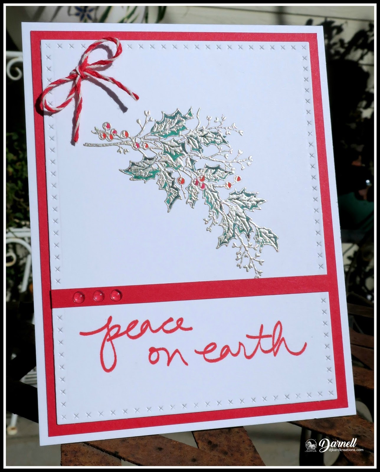 Three beautiful cards, Darnell. I hadn't seen that the CAS Christmas challenge was up yet, will have to check it out. Glad you got some fun time with the boys. Have fun on your little anniversary trip. Hugs to you all.