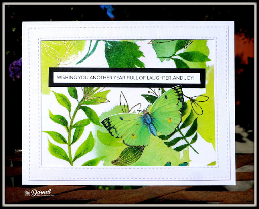 Wonderful use of the gorgeous washi tape, Darnell! The butterfly is perfect to be added to the leafy scene. I'm sure Nancy loved your card, the cake, and the champagne! Hammy did a great job of decorating the cake.